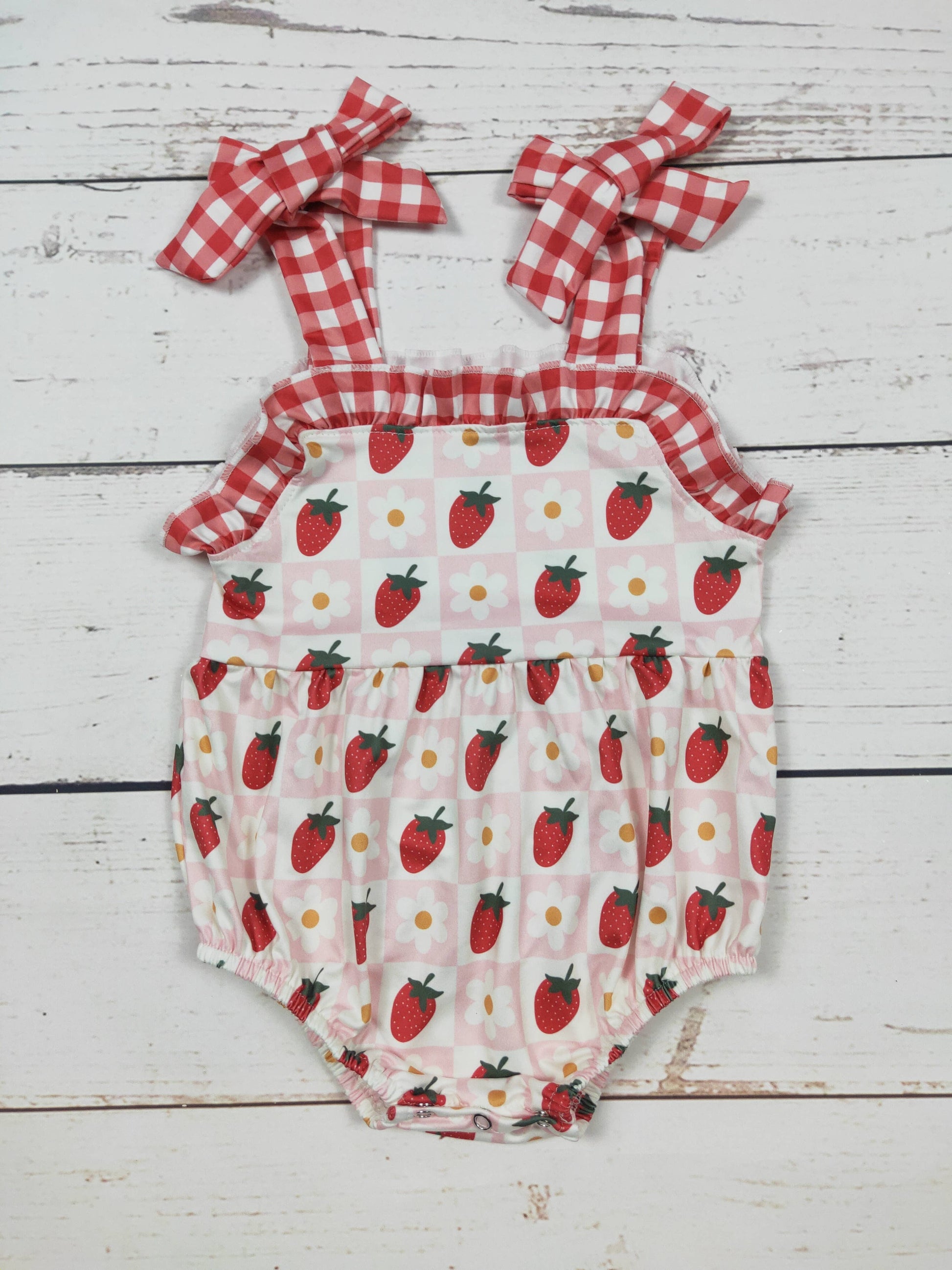 Baby Girl Checkered Strawberry Bubble ETA: 8-10 Days This sweet and stylish bubble will keep your little one looking adorable for days to come. Made with high-quality fabric and a classic checkered print, it's perfect for any occasion.