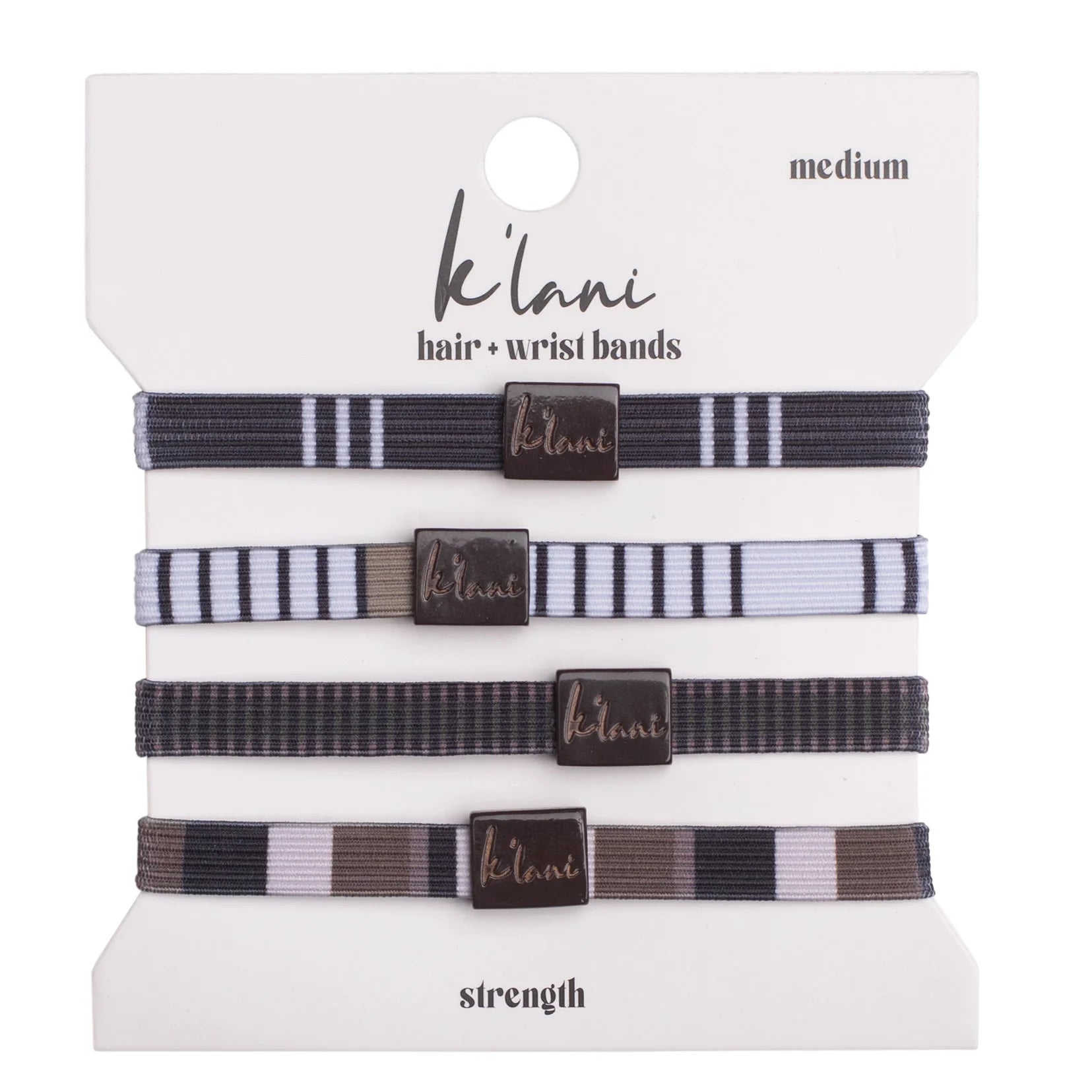 Our strength set includes four hair + wristbands that hold all hair types with ease. Each band has a stripe in contrasting neutrals that makes it the perfect understated accessory for men and women. The stone colored set reminds us that we can be our own rock, and are strong enough to conquer our fears