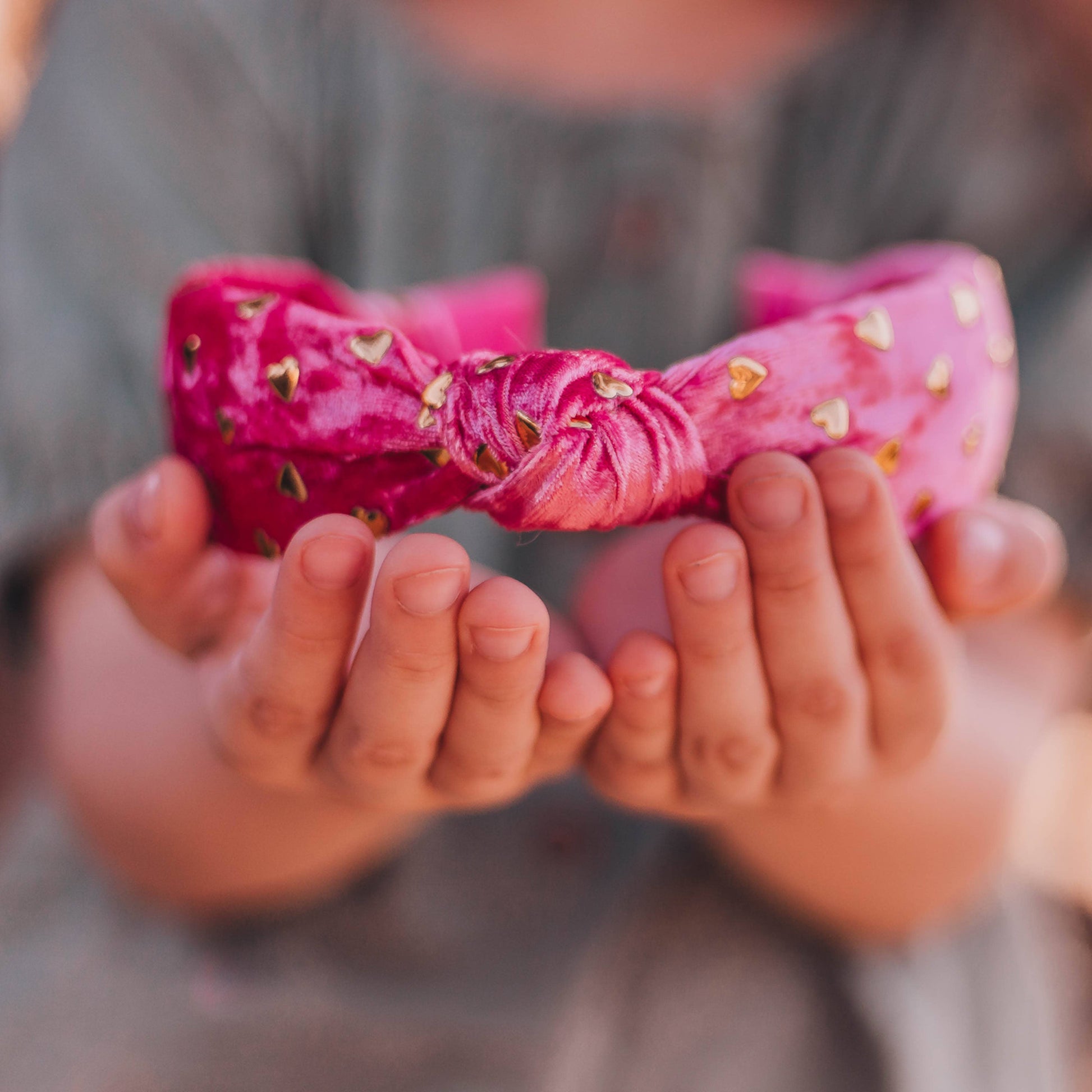 Kids Knot Headband - Gold Heart Stud Velvet Hair Accessories